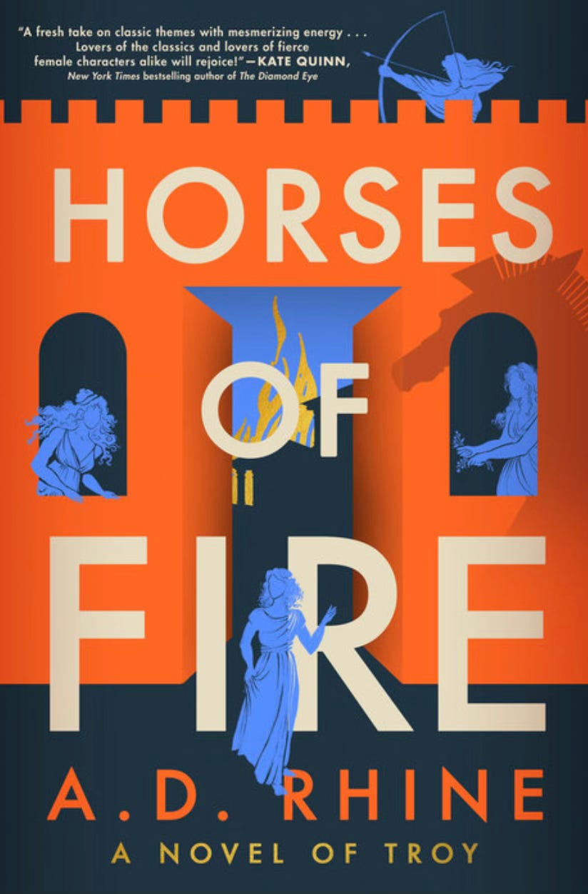 One of my very best friends is half of the completely brilliant team writing as A.D. Rhine. Their debut, Horses of Fire, is an absolutely gorgeous retelling of the Iliad focused more on the warrior women who kept the world from spinning out of control than the mythological gods. I simply cannot gush enough about how amazing this book it. It’s a lyrical page-turner that will absolutely captivate you.